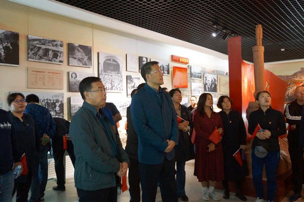 為深入推進“不忘初心、牢記使命”主題教育,在舉國上下普天同慶偉大祖國70華誕之際,2019年9月30日,我院黨委組織全體處級干部,赴涼城縣賀龍革命活動舊址、綏蒙革命紀念園,開展“牢記初心使命,感受紅色記憶”主題黨日活動,深切緬懷革命先烈的英雄業(yè)績,重溫厚重的紅色文化,進一步鑄牢愛國主義理想信念。學院黨委書記孫智憑,院長柴金義,常務(wù)副院長董平,副院長孫恒、武鈞參加。