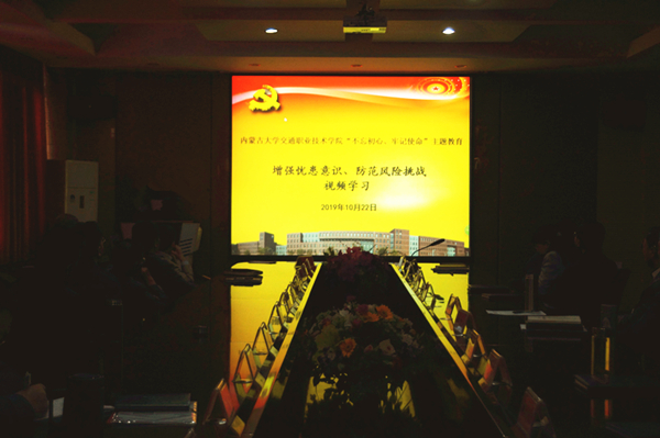 按照學(xué)院《關(guān)于院系兩級(jí)理論學(xué)習(xí)中心組開(kāi)展“不忘初心、牢記使命”主題學(xué)習(xí)研討的通知》要求,10月22日下午,學(xué)院黨委在交通樓A439會(huì)議室組織開(kāi)展中心組擴(kuò)大學(xué)習(xí),集中觀看《增強(qiáng)憂患意識(shí),防范風(fēng)險(xiǎn)挑戰(zhàn)》警示教育片。學(xué)院領(lǐng)導(dǎo),全體處級(jí)干部,直屬黨支部書(shū)記、基層黨支部書(shū)記50多人參加學(xué)習(xí)。黨委宣傳部部長(zhǎng)高飛主持學(xué)習(xí)活動(dòng)。