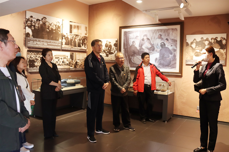 鞠躬禮后,講解員引領(lǐng)全體人員走進烏蘭夫故居展廳內(nèi),通過文字資料、圖片、實物等,跟隨先輩足跡,憶往昔崢嶸歲月;大家邊走、邊聽、邊看,對革命先烈生平事跡有了更新的認(rèn)識。