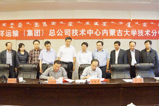 最后,內(nèi)蒙古大學(xué)副校長班士良教授和中遠集團研發(fā)中心主任白培軍就中遠集團研發(fā)中心內(nèi)蒙古大學(xué)分中心成立簽訂協(xié)議,并為分中心揭牌。內(nèi)蒙古大學(xué)交通學(xué)院科技處處長李宏教授介紹了分中心的組成人員。