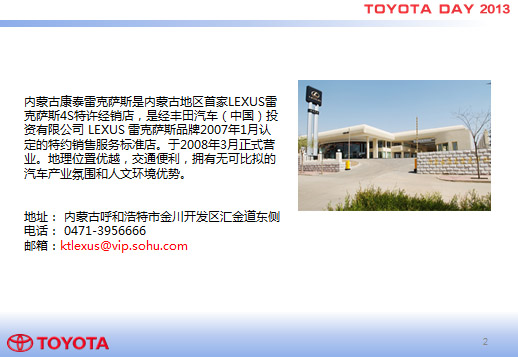 呼和浩特金川豐田汽車(chē)銷(xiāo)售服務(wù)有限公司 |