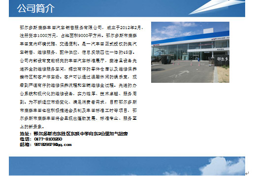 鄂爾多斯康泰豐田汽車(chē)銷(xiāo)售服務(wù)有限公司 |