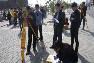 為推動(dòng)我院自治區(qū)級(jí)精品課《工程測(cè)量》教學(xué)的創(chuàng)新與發(fā)展,切實(shí)加強(qiáng)學(xué)生測(cè)量技能的培養(yǎng),4月14日,由教務(wù)處、道路工程系聯(lián)合舉辦的“2013年交通學(xué)院測(cè)量技能競(jìng)賽”在交通樓前隆重舉行。學(xué)院副院長(zhǎng)孫恒、教務(wù)處處長(zhǎng)趙志蒙、道路工程系主任張志國(guó)、工程管理系副主任伍必慶等出席并觀看了本次競(jìng)賽。