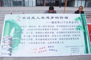 本次活動(dòng)將持續(xù)一周,主要內(nèi)容有:現(xiàn)場(chǎng)師生在宣傳橫幅上簽名;參加“淘書(shū)會(huì)友”活動(dòng)的同學(xué)進(jìn)行圖書(shū)交換;師生選出需要的書(shū)籍交由圖書(shū)館訂購(gòu);從師生中選拔“讀書(shū)標(biāo)兵”相互交流讀書(shū)體會(huì);“作家+作品=獎(jiǎng)品”活動(dòng);“拍出你心中最能體現(xiàn)讀書(shū)氛圍的場(chǎng)景”攝影展等活動(dòng)。