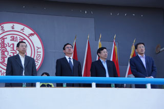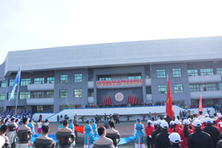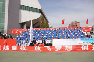 學(xué)院領(lǐng)導(dǎo)與學(xué)生方隊、觀眾和志愿者合影 | |