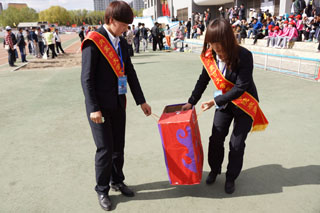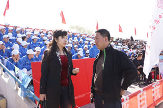 學(xué)院黨委副書記、紀(jì)委書記白托婭(左)在運動會場 |