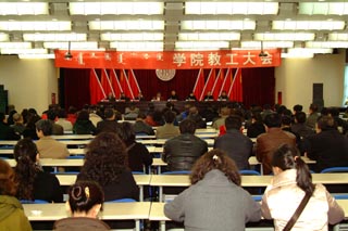 學(xué)院黨委書記孫智憑主持會(huì)議,院長(zhǎng)柴金義教授做工作報(bào)告。