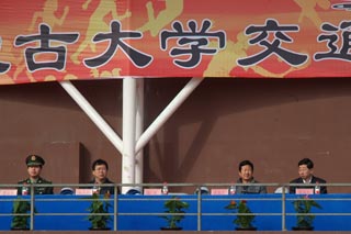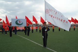 中國(guó)人民解放軍陸軍預(yù)備役步兵第三十師營(yíng)長(zhǎng)石道遠(yuǎn)(右圖左二),內(nèi)蒙古玉泉區(qū)人民武裝部軍事參謀菅曉峰中尉(左圖左一),內(nèi)蒙古大學(xué)黨政辦公室副主任溫毅剛(左圖右一),內(nèi)蒙古大學(xué)體育教育部副部長(zhǎng)王文杰(左圖右二),黨委副書(shū)記、紀(jì)委書(shū)記白托婭(右圖左一),副院長(zhǎng)武鈞(右圖右二),黨委委員、科研處處長(zhǎng)李宏教授(右圖右一),黨委委員、教務(wù)處處長(zhǎng)趙志蒙教授(左圖左二) | |