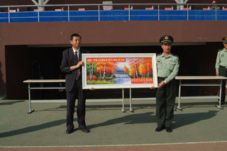學院領導向玉泉區(qū)人民武裝部贈送牌匾 |