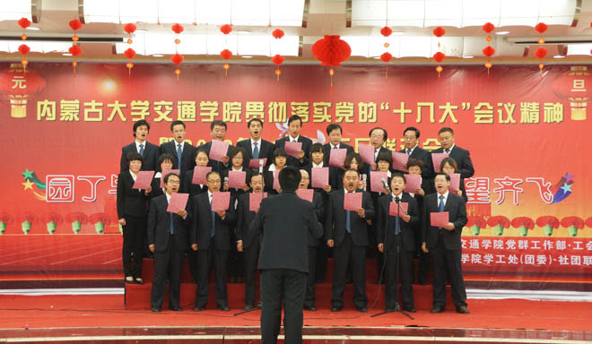 12月27日下午,學(xué)院在交通樓多功能廳舉辦2013年新年聯(lián)誼會暨工會表彰大會。我院黨委書記孫智憑,院長柴金義,常務(wù)副院長董平,副院長孫恒,副院長武鈞,黨委委員、科研處處長李宏,黨委委員、教務(wù)處處長趙志蒙出席表彰大會并為獲獎單位和個人頒獎。黨委副書記、紀(jì)委書記白托婭主持會議。全院200余名教職工參加了聯(lián)誼會。