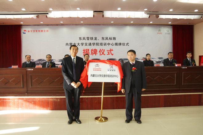 “東風雪鐵龍、東風標致內(nèi)蒙古大學交通學院培訓中心”成立,標志著我院與神龍汽車有限公司的教育培訓合作的全面啟動。