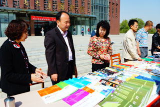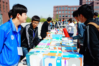 本次活動持續(xù)2天在南校區(qū)圖書館樓前廣場舉行,主要內(nèi)容有:組織各大出版社書目參展,讓師生選出自己喜歡和需要的書籍,由圖書館訂購所選圖書;現(xiàn)場師生在宣傳橫幅上簽名,弘揚(yáng)讀書文化;參加“淘書會友”活動,進(jìn)行圖書交換以提高圖書利用率等。