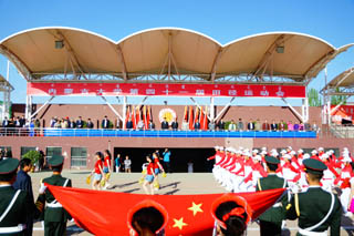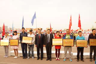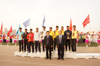 與會(huì)領(lǐng)導(dǎo)為獲得學(xué)生男子團(tuán)體前六名的單位頒獎(jiǎng) |