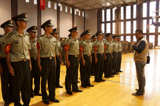 第三、希望同學(xué)們從思想上充分認識大學(xué)生軍訓(xùn)對以后成長成才的重要性。能夠以飽滿的精神和樂觀的態(tài)度參加軍訓(xùn),經(jīng)受軍旅生活的錘煉,弘揚不怕苦、不怕累的進取精神,勇于同各種困難作斗爭,在磨練中健康成長。