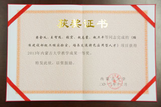 我院以柴金義院長牽頭,王智遠副教授、張宏副教授、趙志蒙教授與趙衛(wèi)平教授為主要參加人的《瞄準建設(shè)部級工程實驗室,培養(yǎng)交通特色應用型人才》教學成果榮獲學校授予的校級教學成果獎一等獎。并在2014年9月11號內(nèi)蒙古大學召開2014年本科教學工作會議上頒發(fā)了獲獎證書。