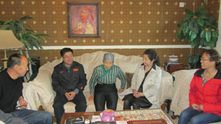 | 學(xué)院黨委副書(shū)記、紀(jì)委書(shū)記白托婭(右二)看望慰問(wèn)拉巴哈(右三)老同志,黨群工作部部長(zhǎng)李廣武(右一),黨群工作部副部長(zhǎng)、工會(huì)主席李春燕(右四),離退辦副主任曹鐵強(qiáng)(右五)陪同。 |