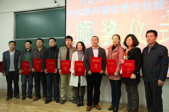 學(xué)校副校長張吉維(左一) 、紀(jì)委書記李秀良( 右一 )為獲獎單位及個人頒獎,我院工會主席李春燕(右三)領(lǐng)獎 | |