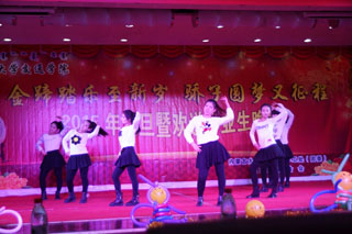晚會(huì)以舞蹈《開門紅》正式拉開帷幕。共分為兩個(gè)篇章:以歌曲《拜新年》、舞蹈《閃耀的世界》、啞劇《診室風(fēng)波》、舞蹈《宮商角徵羽》、歌曲《我的父親是牧馬人》、小品《鬧元旦》表達(dá)第一篇章“駿馬踏蹄辭舊歲,羚羊翹首迎新來”,表達(dá)了對(duì)同學(xué)們新年的美好祝愿。同學(xué)們用自己的表演方式給老師和同學(xué)們帶來快樂,精彩的演出更是讓觀眾們掌聲不斷;以歌曲《畢業(yè)歌》、舞蹈《黎明》、朗誦《匆匆那年》、歌伴舞《為你寫詩》、小品《與青春有關(guān)的日子》、歌曲《相親相愛》詮釋了第二篇章“驕子圓夢(mèng)展宏圖,學(xué)府育才奏華章”,表達(dá)了對(duì)畢業(yè)生的不舍以及母校師生對(duì)他們的祝福。畢業(yè)生代表們,用舞蹈、朗誦、小品的精彩演出,告訴母校,他們的不舍和對(duì)母校真摯的祝愿。在觀看過程中,很多畢業(yè)生都留下了眼淚。