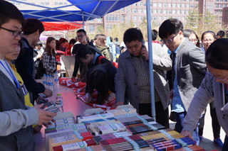 4月23日,我院圖書館在南校區(qū)圖書館前廣場組織了紀念第二十個“世界讀書日”活動。圖書館館長王志霞、圖書館黨支部書記孟黎、圖書館流通部部長王帥及部分圖書館館員參加了活動。