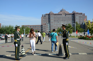 國旗班站崗維護現(xiàn)場秩序 |