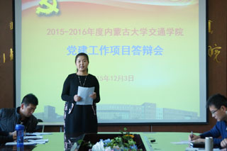 12月3日上午,學(xué)院黨建工作項(xiàng)目承辦(立項(xiàng))答辯會(huì)在交通樓A439舉行。學(xué)院黨委副書(shū)記、紀(jì)委書(shū)記白托婭,黨政辦主任李澤吉,黨群工作部部長(zhǎng)李強(qiáng),科研處副處長(zhǎng)劉林平,公共課教學(xué)部主任陳斯祁以及學(xué)院特邀黨建組織員白文生出席答辯會(huì)并擔(dān)任評(píng)委,答辯會(huì)由組織人事處處長(zhǎng)周永良主持。