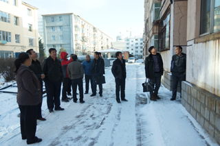 2015年12月14日,由呼市住房保障和房屋管理局老舊小區(qū)改造辦公室、玉泉區(qū)社區(qū)辦、博洋天成設計院房屋結構設計公司相關負責人組成調研組來我院家屬區(qū)實地考察老舊小區(qū)改造工程項目進展情況以及小區(qū)申請的增加改造項目。學院后勤保衛(wèi)處、家屬區(qū)管委會和小區(qū)改造施工方內蒙古盈利宏建筑安裝有限責任公司主要負責人陪同考察。