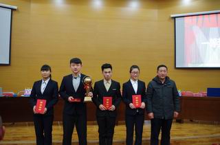圖為高飛處長為決賽第一名工程管理系代表隊(duì)頒獎(jiǎng) |