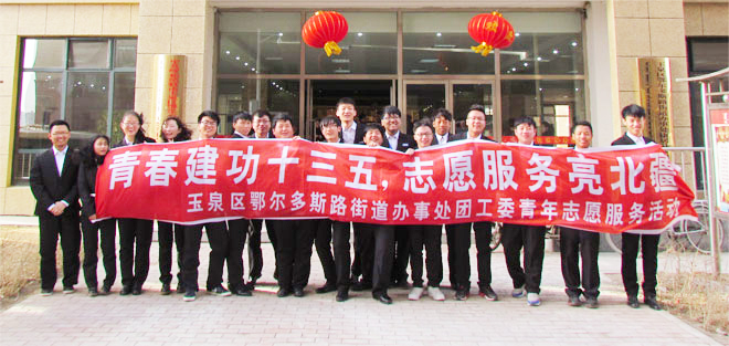 今年的3月5日,是我國第五十三個“雷鋒日”。社團聯(lián)合會的20名委員們代表內蒙古大學交通學院自愿、積極地參與了玉泉區(qū)鄂爾多斯路街道辦事處團工委舉辦的“青春建功十三五,志愿服務亮北疆”青年志愿者服務活動。社聯(lián)委員們走進了社區(qū),看望孤寡老人,清潔衛(wèi)生,協(xié)助環(huán)衛(wèi)工人清理道路垃圾,為小區(qū)居民送去了溫暖。