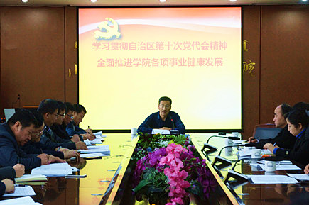 12月9日上午,學(xué)院黨委組織黨委委員、各黨總支(直屬支部)書記、機關(guān)黨總支全體黨員,傳達學(xué)習(xí)自治區(qū)第十次黨代會精神。