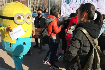 學(xué)生們統(tǒng)一著裝,系上紅絲帶,扮上卡通萌娃形象,通過學(xué)生擁抱、握手、現(xiàn)場(chǎng)簽名、知識(shí)展板、宣傳資料發(fā)放等活動(dòng)形式,從交通樓到學(xué)生餐廳,從主樓到宿舍樓,同學(xué)們和萌娃一路簇?fù)?、一路宣傳,向南校區(qū)學(xué)生廣泛宣傳艾滋病的傳播途徑、如何預(yù)防以及如何對(duì)待艾滋病患者的知識(shí)。