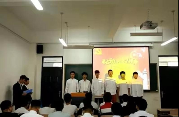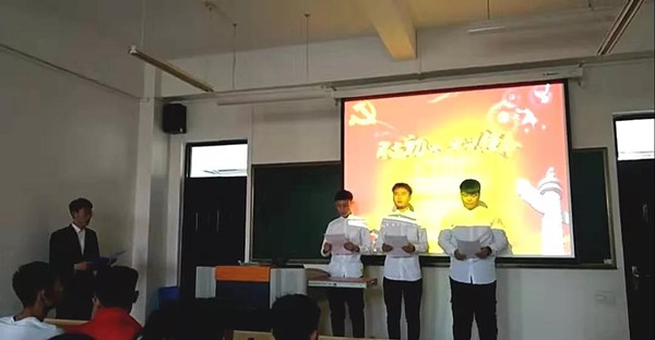 朗誦《不忘初心,牢記使命》、《不忘初心,跟黨走》、《我愛我的祖國(guó)》及合唱《團(tuán)結(jié)就是力量》、《強(qiáng)軍戰(zhàn)歌》、《我和我的祖國(guó)》,贏得了師生的陣陣掌聲。無(wú)不傳導(dǎo)著中國(guó)共產(chǎn)黨人那永不褪色的精神和那不畏艱險(xiǎn)、不懼困難、還有那銳意勃發(fā)的氣質(zhì)。團(tuán)日活動(dòng)讓全體同學(xué)倍感振奮,活動(dòng)臨近尾聲大家齊聲高呼:“不忘初心、牢記使命,團(tuán)結(jié)一致、砥礪前行!筑機(jī)1924班,加油!”響亮的口號(hào)響徹整個(gè)教室、整個(gè)樓道,激勵(lì)著在場(chǎng)每一個(gè)人。