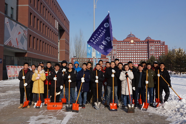 師生黨員、學(xué)生干部、入黨積極分子、卓越工程師班學(xué)生們不畏嚴(yán)寒,爭先恐后,拿起鐵锨、掃帚等工具,齊心協(xié)力,配合默契,迅速投入到掃雪工作中,成為冬日校園一道亮麗的風(fēng)景線。經(jīng)過1個多小時(shí)奮力勞動,交通樓前的積雪基本被清理干凈。