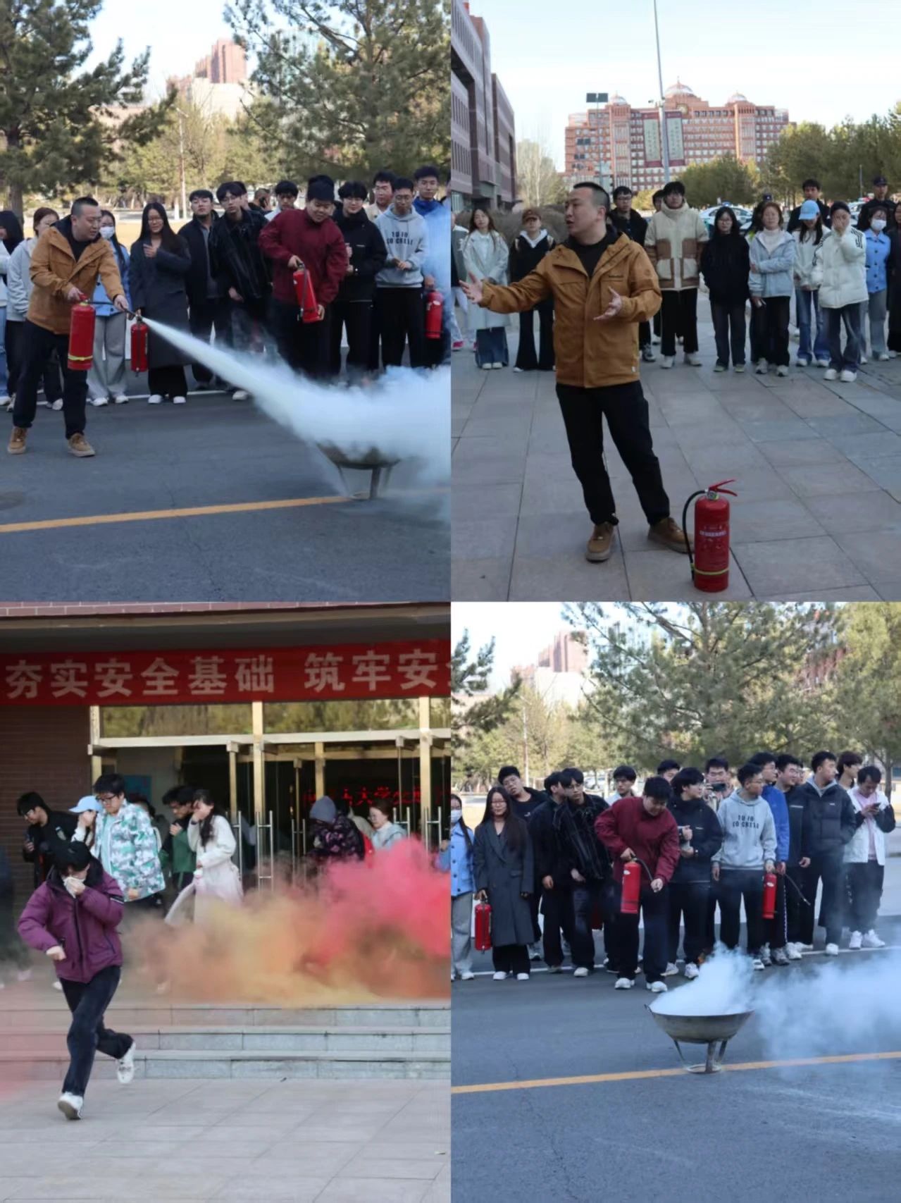 逃生演練在交通樓J區(qū)有條不紊地進行,工作人員點燃煙幕彈,拉響警報的同時學生們按照預定路線迅速撤離,整個過程秩序井然。隨后內(nèi)蒙古建筑職業(yè)技術(shù)學院消防技能訓練中心(基地)負責人方嘉淇對各種類型的滅火器進行了介紹,詳細講解了滅火器的使用方法,并指導學生實際操作體驗。同學們在保衛(wèi)人員的指導下分組上陣進行實操演練,掌握滅火器的正確使用方法,明晰火災發(fā)生時應該采取的有效行動。