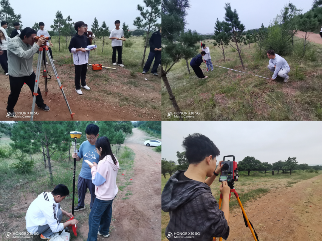 同步開展的“道路勘測(cè)實(shí)習(xí)”則以“理論與實(shí)踐并重”為核心,通過(guò)分組協(xié)作的方式,全面模擬真實(shí)道路勘測(cè)流程。選線組、測(cè)角組、中樁組、水平組、橫斷組、地質(zhì)組、橋涵組及內(nèi)業(yè)組各司其職,共同完成了一段復(fù)雜地形的道路勘測(cè)任務(wù),展現(xiàn)了扎實(shí)的專業(yè)素養(yǎng)與團(tuán)隊(duì)協(xié)作精神。